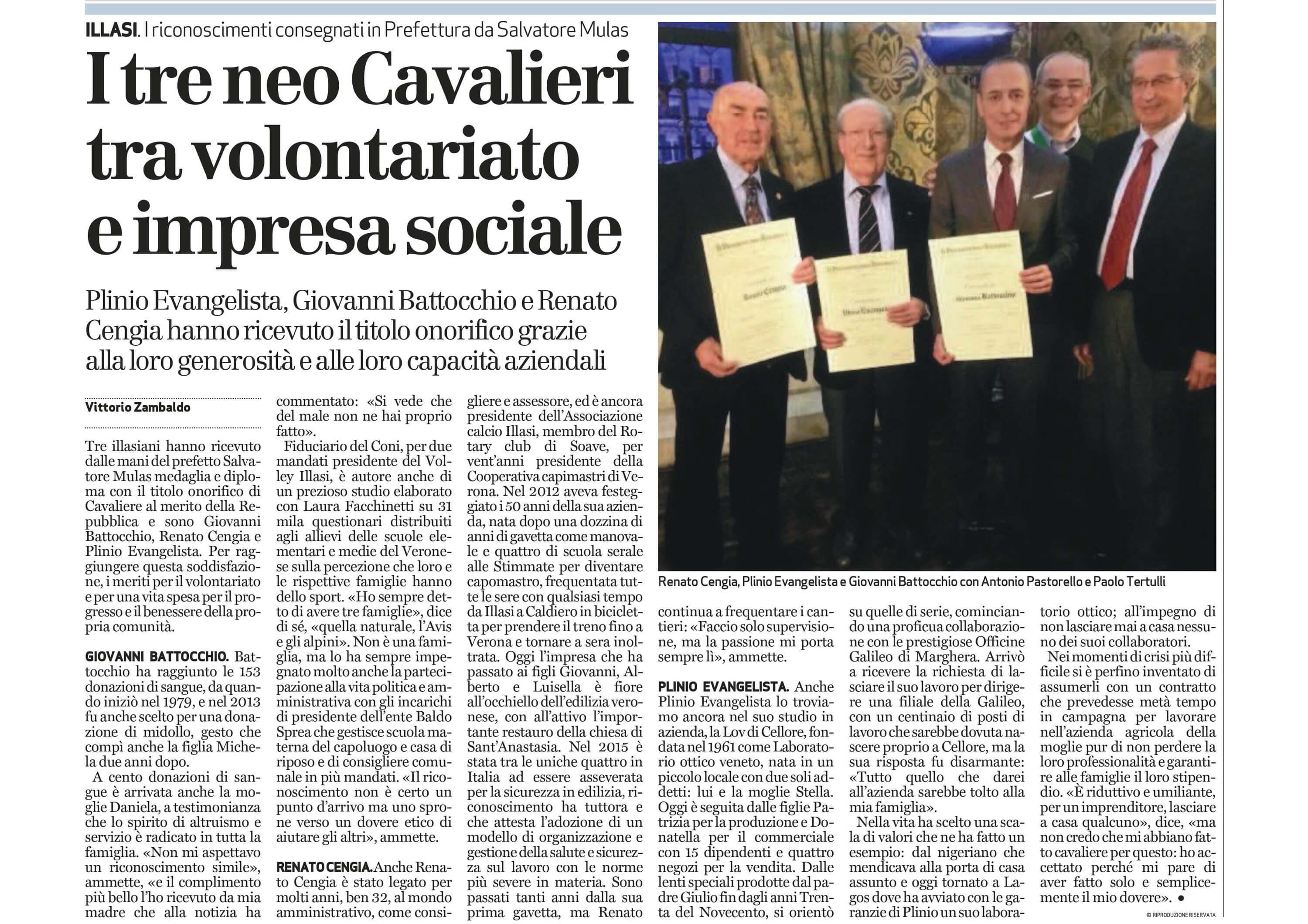 Renato Cengia insignito dell'Onoreficenza di Cavaliere della Repubblica Italiana.